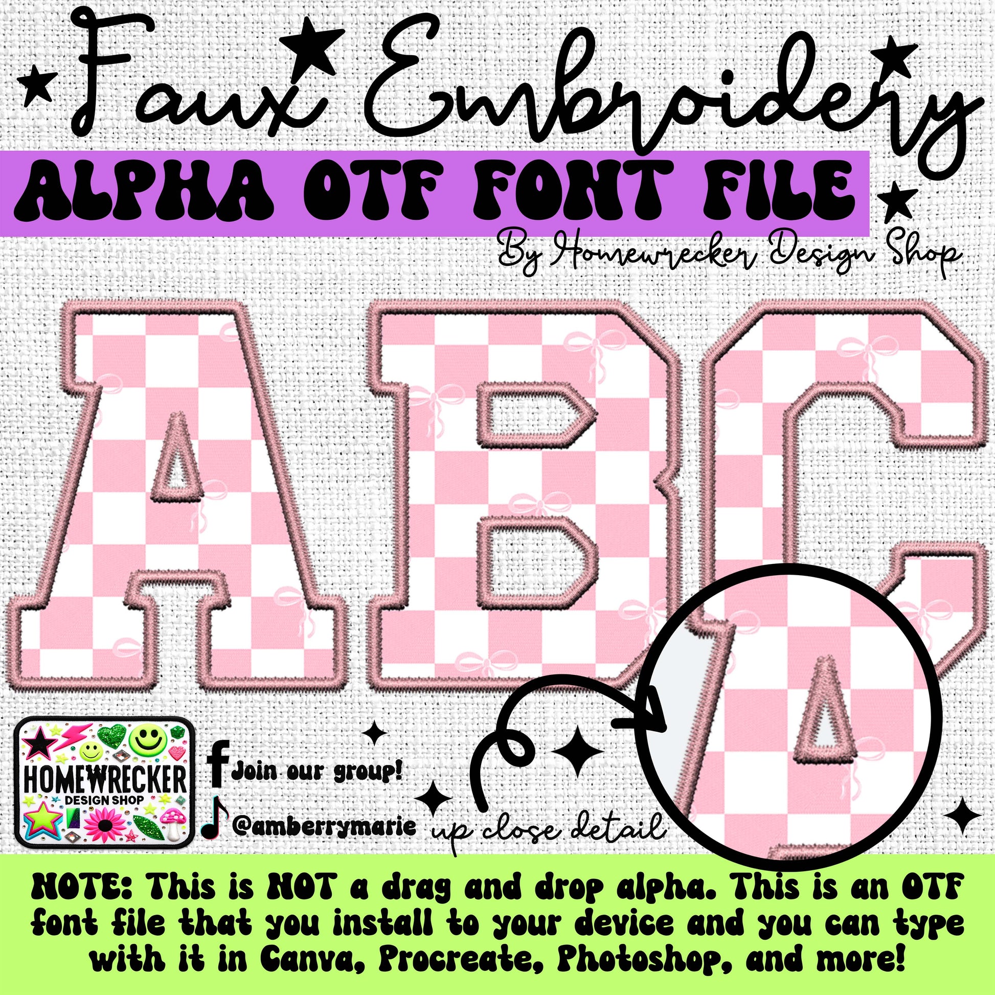 Pink and White Checkered OTF Font, Faux Embroidery, Varsity Letter Style OTF Font Clipart Make your own designs Digital Download